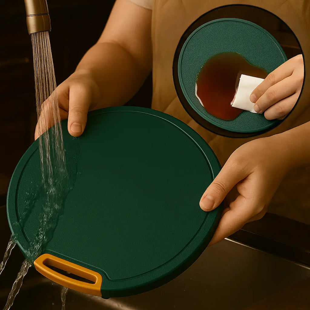 Ao contrário das tábuas tradicionais que racham, mancham ou soltam resíduos, a SafeCut® foi feita com um composto de alta resistência que evita desgaste mesmo com uso intenso. Nada de trocar de tábua a cada mês.