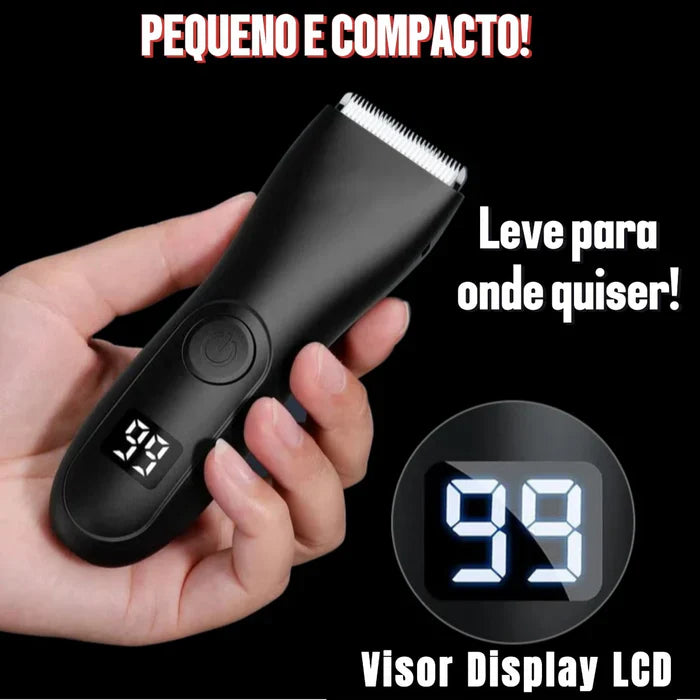 O SafeTrim Pro tem corpo antiderrapante, visor LCD e encaixe anatômico para um controle total — até mesmo no banho!